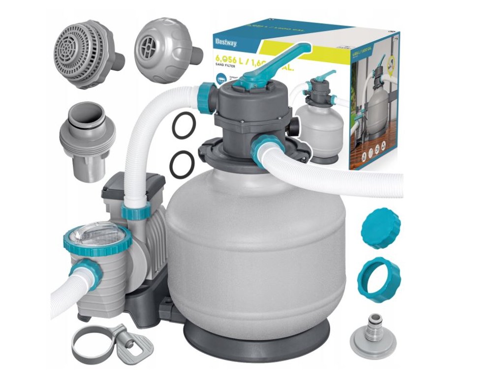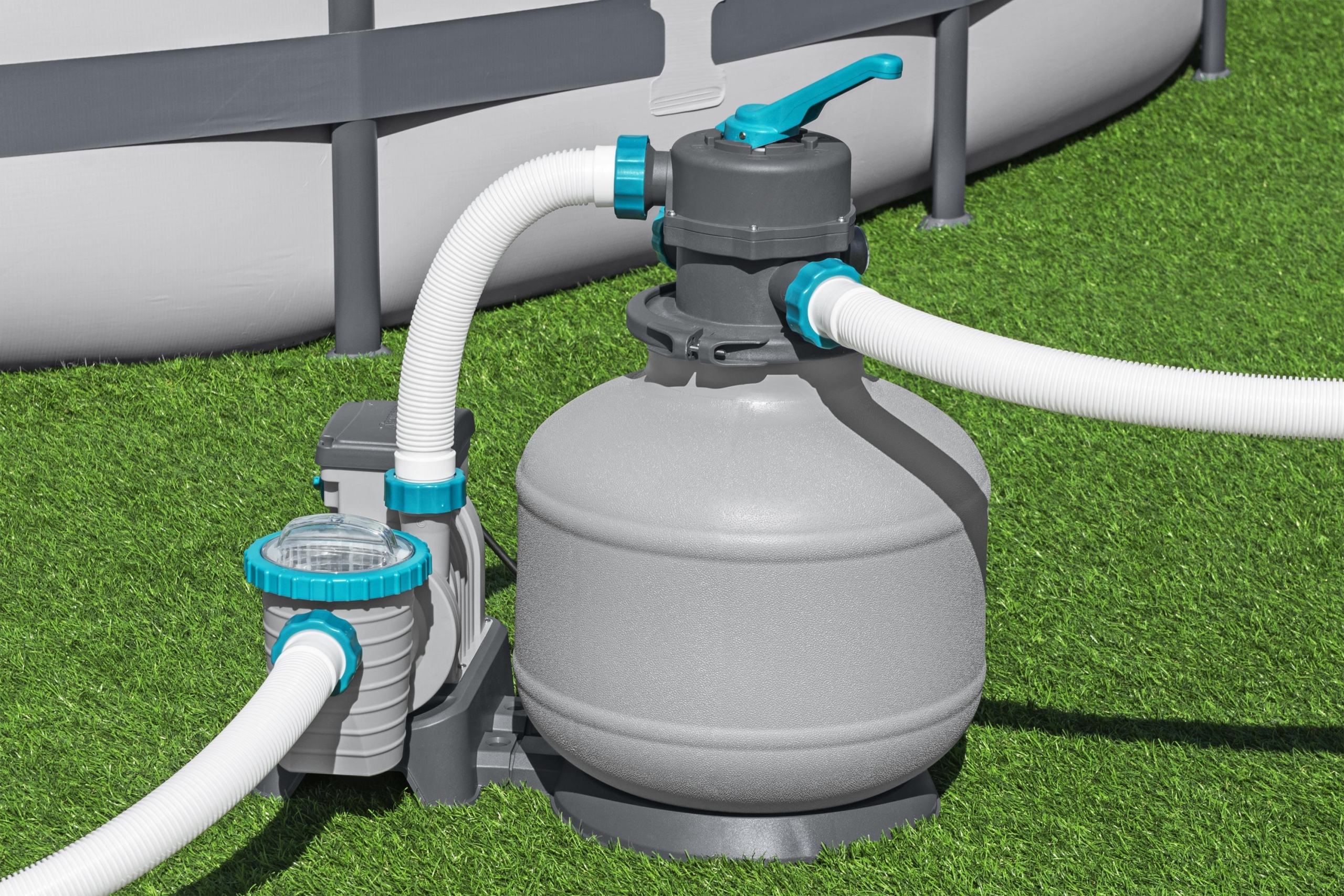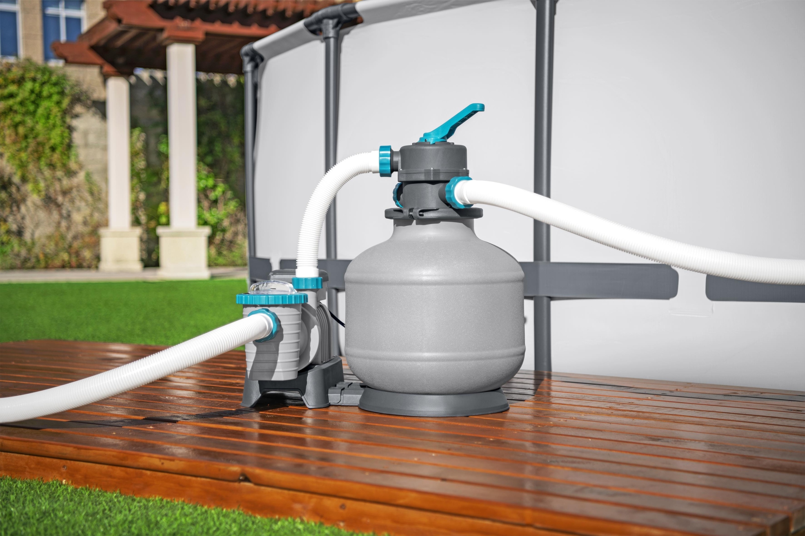 Čerpadlo s výkonem 5678 l/hodinu pomůže vyčistit bazén od plovoucích nečistot a je ideální pro bazény o objemu od 1 100 do 42 300 litrů. K provozu vyžaduje náplň – písek (0,45-0,85 mm) nebo vysoce účinné filtrační kuličky POLYSPHERE.