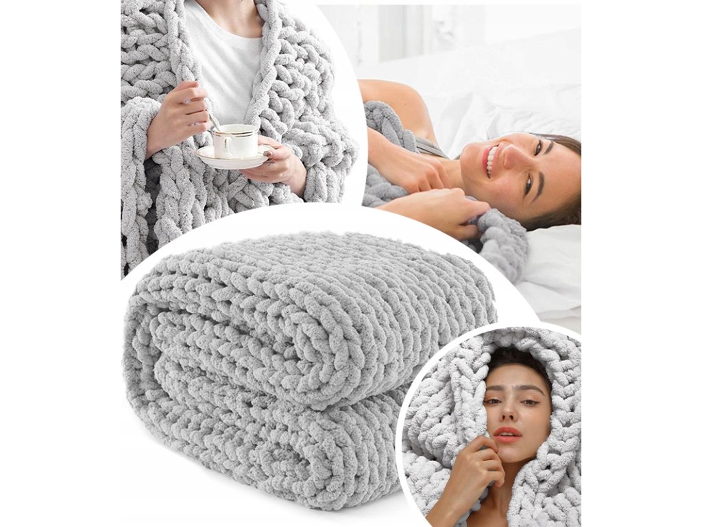 ✅Silná pletená deka 80x100 cm – žinylkový pletený přehoz