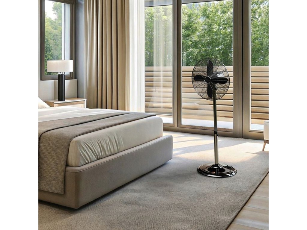 Elegantní a mimořádně funkční stojanový ventilátor s retro designem. Velký ventilátor o průměru 40 cm a maximální výšce 124 cm jsou vlastnosti, které účinně ochladí vzduch v horkých dnech.