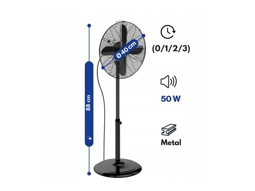 je vysoce kvalitní stojanový ventilátor o průměru 40 cm - přesně ta správná velikost pro rychlé ochlazení horkého vzduchu v místnosti. Můžete jej bez obav zapnout, i když je doma malé dítě.