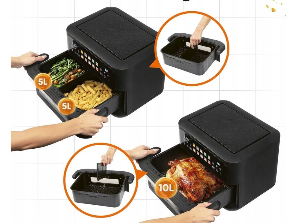 ✔️Fritéza bez tuku 10L 2400W Double AIR FRYER 10 programů - zdravější, rychlejší, dvakrát chutná!