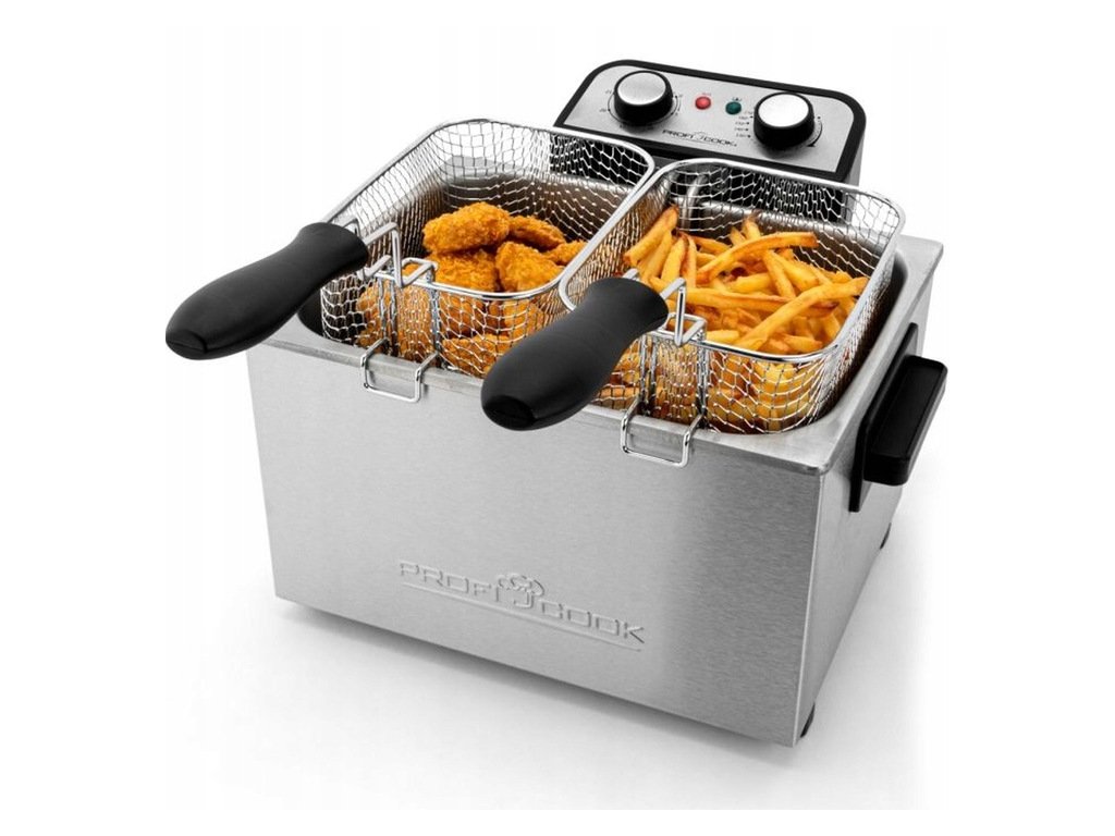 - Těleso, víko, topné těleso, tuk zásobník a ovládací panel z nerezové oceli