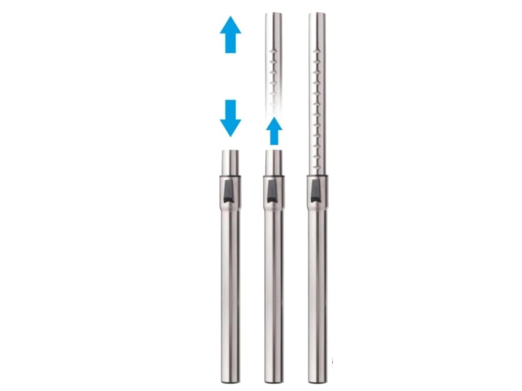 TELESKOPICKÁ TRUBICE S NASTAVENÍM DÉLKY, TAKŽE SI MŮŽETE SNADNO NASTAVIT DÉLKU SACÍ HADICE PODLE VÝŠKY PRO POHODLNOU PRÁCI.