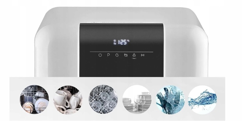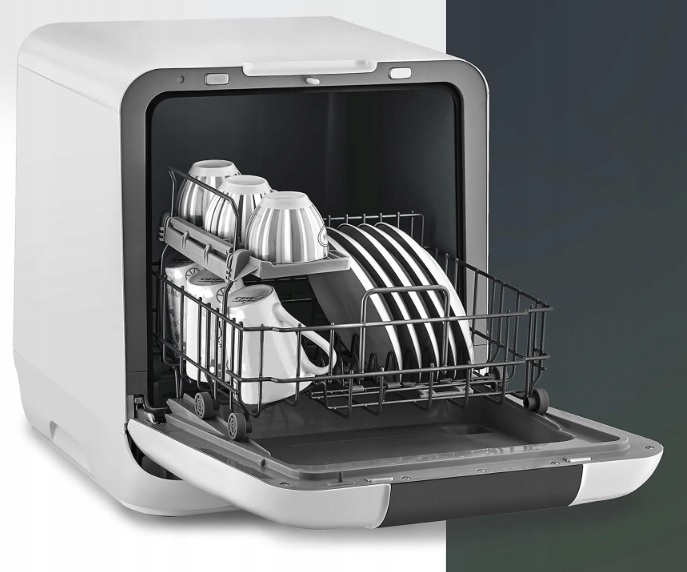 Stolní myčka je při používání velmi tichá (pouze 58 dB), je kompaktní a zabírá málo místa.
