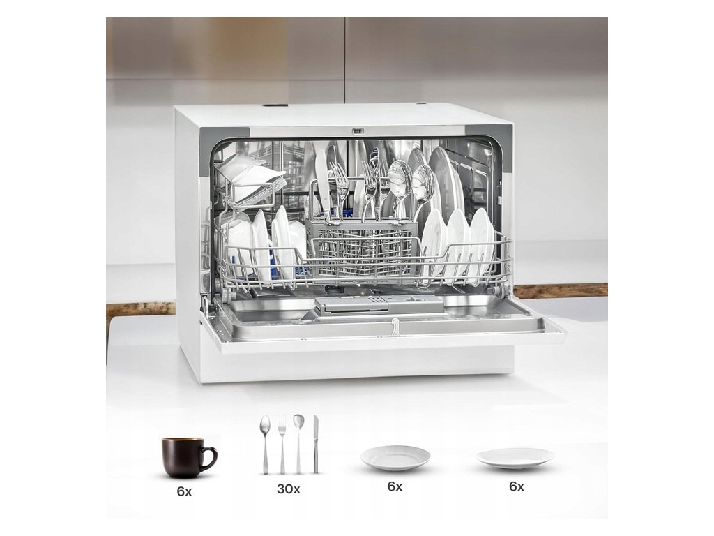 ✅HTG 8840 je skvělým řešením pro malé kuchyně, ložnice, hotelové pokoje a všude tam, kde nelze použít běžnou myčku nádobí. Tato kompaktní myčka nádobí pojme až šest sad nádobí, které se myjí s příkonem 1170-1380 W.