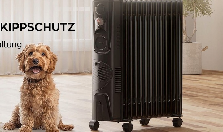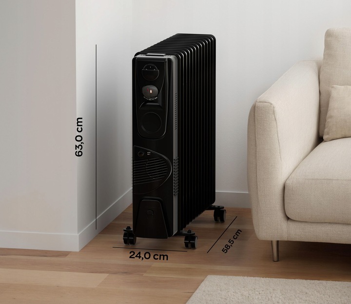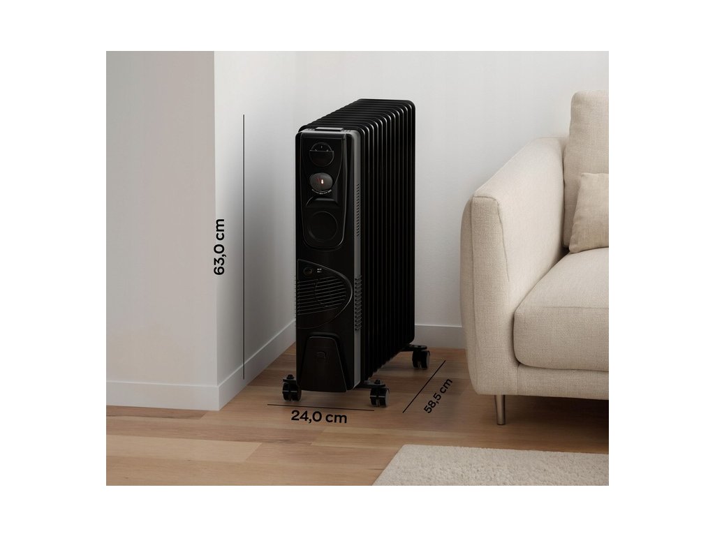 Heinrich´s olejový ohřívač, 13 žeber, elektrický ohřívač s ventilátorem, 3 úrovně topení + ventilátorový ohřívač 400 W, nekonečně proměnné ovládání termostatu, ochrana proti přehřátí