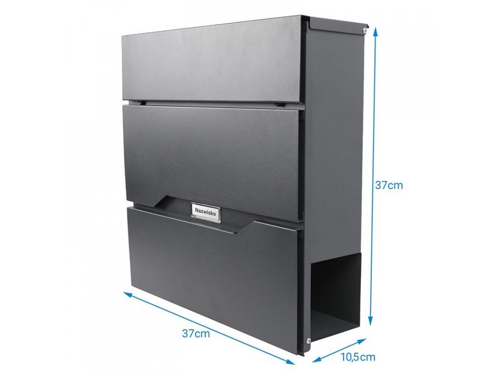 -Vysoce kvalitní poštovní schránka je vyrobena z pozinkované oceli, práškově lakované, s dodatečným kontejnerem pro noviny. Veškerá korespondence je velmi dobře chráněna před vlhkostí a deštěm