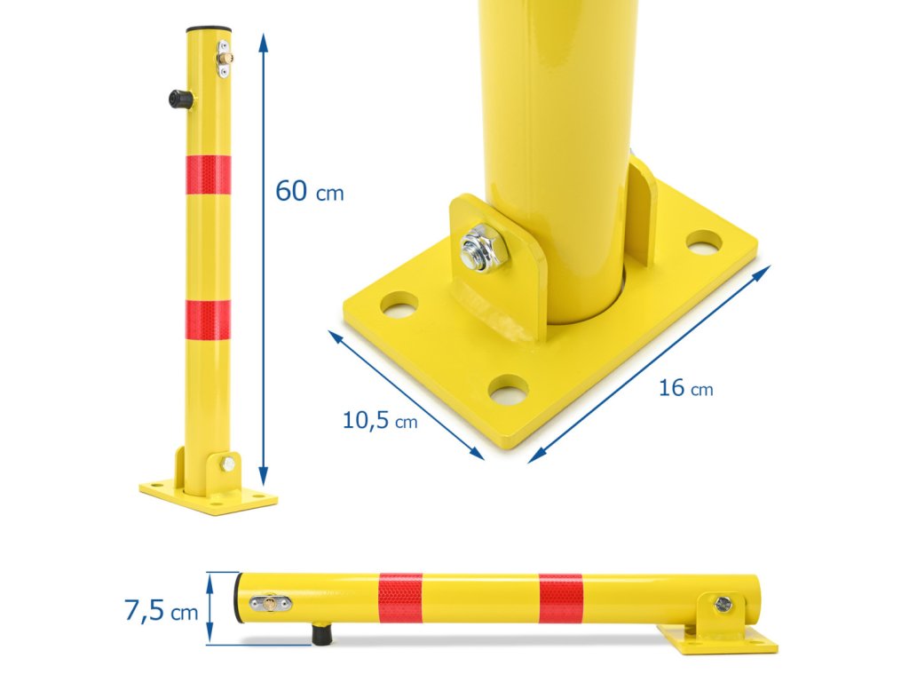 Nabízíme vám kvalitní parkovací zámek. Robustní, pevný a odolný! Maximální výška zámku je 60 cm, se dvěma červenými reflexními pruhy.