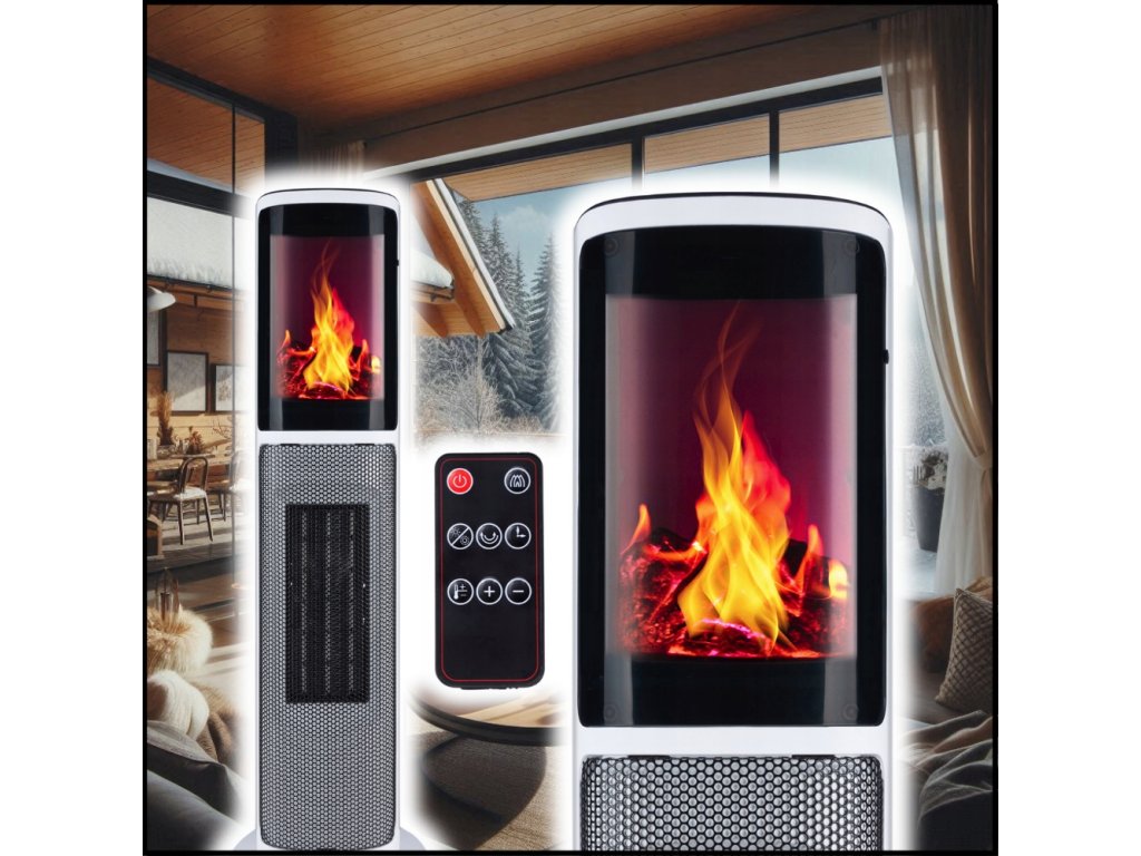 Sloupový elektrický termoventilátor s krbem